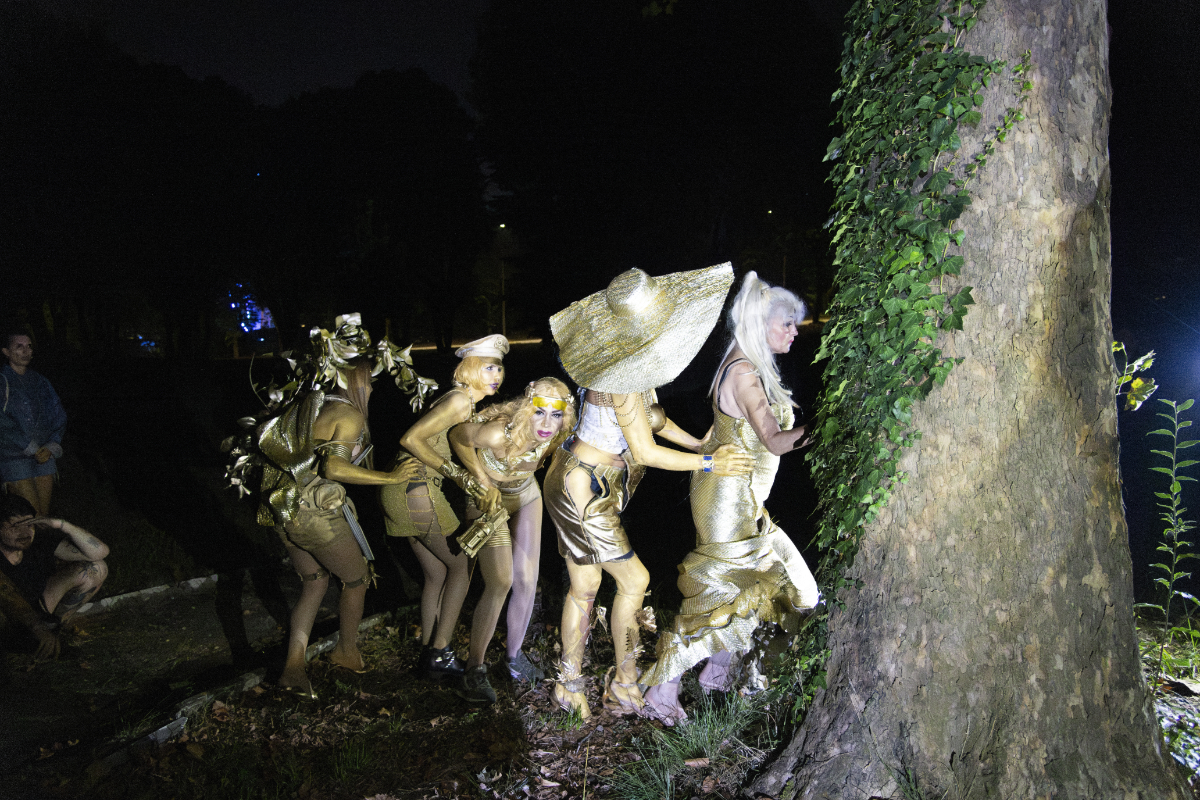 Performance : Paola Drumont, Alexandra Lopez, Morop’sillita Manuela, Barby Martinez, Diana Veruzca Martinez, Giuli Mira, Gilda Star aka Taylor Moon, Avec / With: Romolo Gusmaroli, Balthazar Haberkorn Scripte et texte / Script and text: Pauline Curnier Jardin, Elisa Giuliano Recherches / Research: Serena Olcuire, Martina Silvi Costumes et maquillage / Costume Designer and Make-up: Rachel Garcia